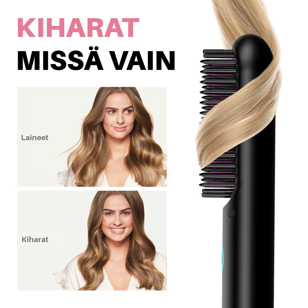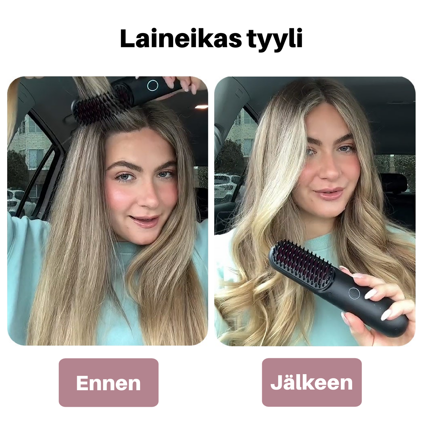 Ehdottomasti! Kaarevan muotoilunsa ansiosta voit muotoilla hiuksesi monella tavalla. Sileän ja elegantin lopputuloksen saat käyttämällä sitä tavallisena harjana. Kauniiden, runsaan volyymin kiharoiden luomiseksi kierrä harjaa samalla kun vedät sen hiusten läpi.